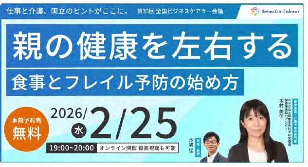 2026年2月25日、第33回ビジネスケアラー会議において、「親の健康を左右する食事とフレイル予防の始め方」というタイトルで講演を行いました。